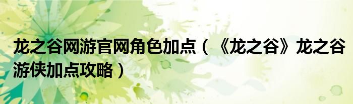 导读 大家好,太太来为大家解答以上问题。龙之谷网游官网角色加点,《龙之谷》龙之谷游侠加点攻略很多人还不知道,现在让我们一起来看看吧!1、