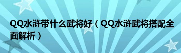QQ水浒带什么武将好(QQ水浒武将搭配全面解析)
