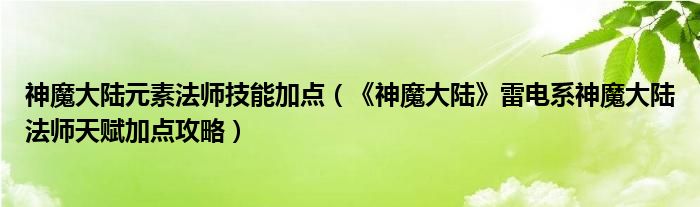 神魔大陆元素法师技能加点(《神魔大陆》雷电系神魔大陆法师天赋加点攻略)