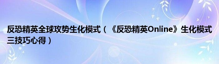 反恐精英全球攻势生化模式(《反恐精英Online》生化模式三技巧心得)