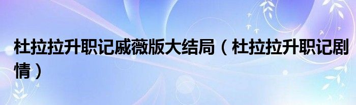 导读 大家好,笑笑来为大家解答以上的问题。杜拉拉升职记戚薇版大结局,杜拉拉升职记剧情这个很多人还不知道,现在让我们一起来看看吧!杜拉拉大学