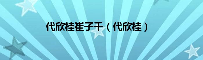 大家好,笑笑来为大家解答以上的问题。代欣桂崔子千,代欣桂这个很多人还不知道,现在让我们一起来看看吧!