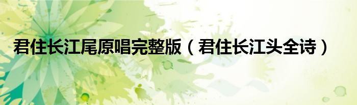 导读 大家好,笑笑来为大家解答以上的问题。君住长江尾原唱完整版,君住长江头全诗这个很多人还不知道,现在让我们一起来看看吧!卜算子 我住长江