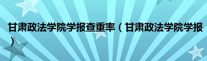 甘肃政法学院学报查重率(甘肃政法学院学报)