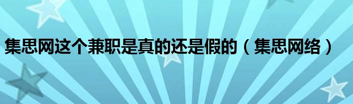 集思网这个兼职是真的还是假的(集思网络)