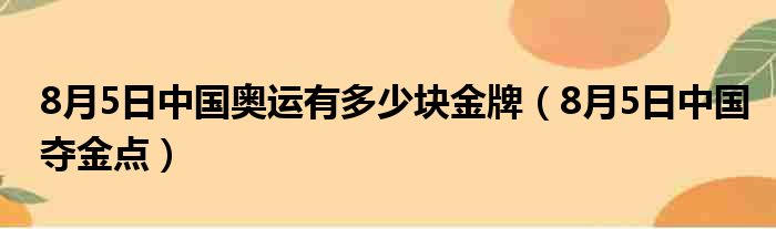 8月5日中国奥运有多少块金牌,8月5日中国夺金点很多人还不知道,今天乐天来为大家解答以上问题,现在让我们一起来看看吧!