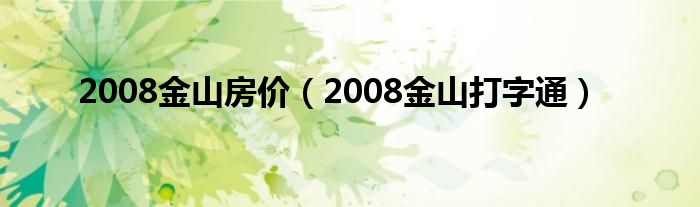 2008金山房价,2008金山打字通很多人还不知道,今天乐天来为大家解答以上问题,现在让我们一起来看看吧!