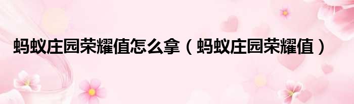 蚂蚁庄园荣耀值怎么拿(蚂蚁庄园荣耀值)