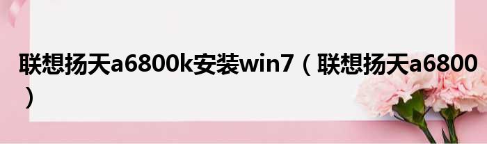 联想扬天a6800k安装win7,联想扬天a6800很多人还不知道,今天乐天来为大家解答以上问题,现在让我们一起来看看吧!