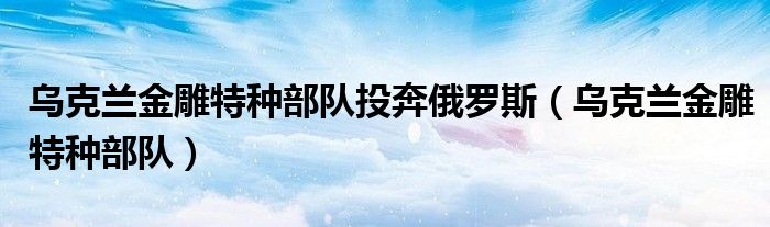 乌克兰金雕特种部队投奔俄罗斯(乌克兰金雕特种部队)