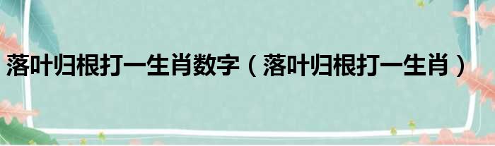 落叶归根打一生肖数字,落叶归根打一生肖这个很多人还不知道,小飞来为大家解答以上的问题。现在让我们一起来看看吧!