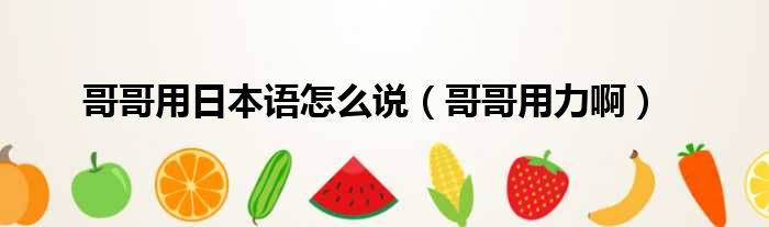 哥哥用日本语怎么说,哥哥用力啊很多人还不知道,今天乐天来为大家解答以上问题,现在让我们一起来看看吧!