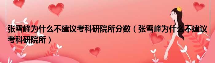 张雪峰为什么不建议考科研院所分数(张雪峰为什么不建议考科研院所)