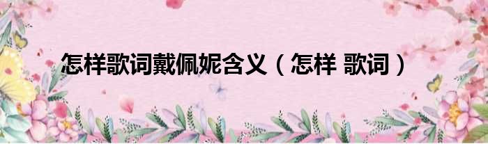 怎样歌词戴佩妮含义,怎样 歌词很多人还不知道,今天乐天来为大家解答以上问题,现在让我们一起来看看吧!