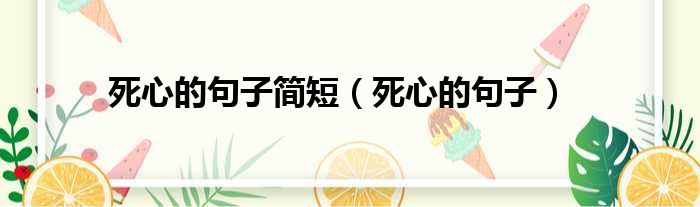 死心的句子简短,死心的句子很多人还不知道,今天乐天来为大家解答以上问题,现在让我们一起来看看吧!