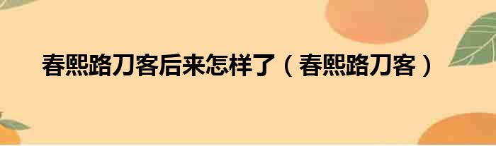 春熙路刀客后来怎样了,春熙路刀客很多人还不知道,今天乐天来为大家解答以上问题,现在让我们一起来看看吧!