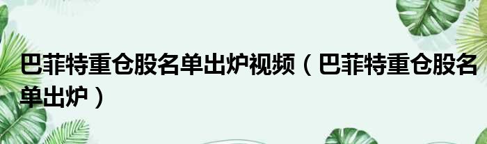 巴菲特重仓股名单出炉视频(巴菲特重仓股名单出炉)