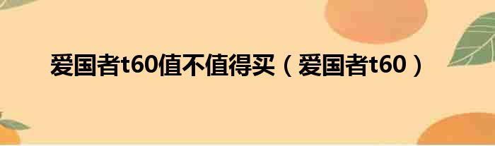 爱国者t60值不值得买(爱国者t60)