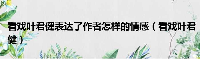 看戏叶君健表达了作者怎样的情感(看戏叶君健)