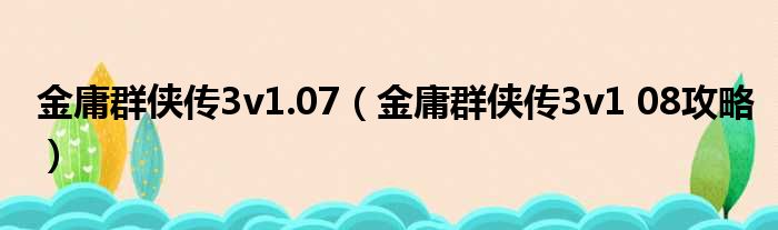 金庸群侠传3v1.07(金庸群侠传3v1 08攻略)