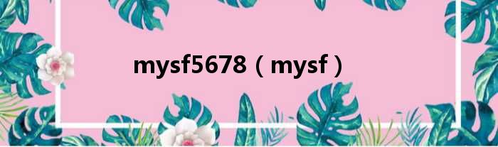 mysf5678,mysf这个很多人还不知道,小飞来为大家解答以上的问题。现在让我们一起来看看吧!