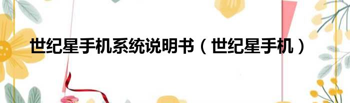 世纪星手机系统说明书,世纪星手机很多人还不知道,今天乐天来为大家解答以上问题,现在让我们一起来看看吧!
