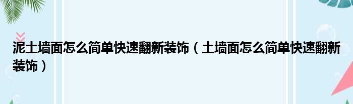 泥土墙面怎么简单快速翻新装饰(土墙面怎么简单快速翻新装饰)