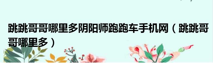 跳跳哥哥哪里多阴阳师跑跑车手机网(跳跳哥哥哪里多)