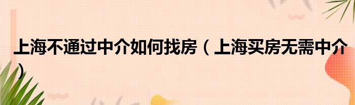 大家好,甜甜来为大家解答以上问题,上海不通过中介如何找房,上海买房无需中介很多人还不知道,现在让我们一起来看看吧!