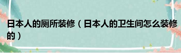 日本人的厕所装修(日本人的卫生间怎么装修的)
