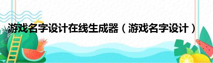 游戏名字设计在线生成器,游戏名字设计很多人还不知道,今天乐天来为大家解答以上问题,现在让我们一起来看看吧!