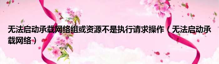 无法启动承载网络组或资源不是执行请求操作,无法启动承载网络很多人还不知道,今天乐天来为大家解答以上问题,现在让我们一起来看看吧!