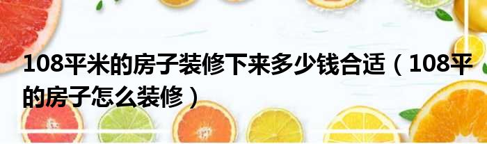 有关108平的房子怎么装修的相关信息,小编就介绍到这里了,希望对大家有所帮助。