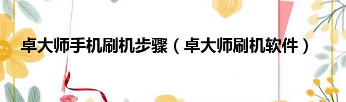卓大师手机刷机步骤,卓大师刷机软件很多人还不知道,今天乐天来为大家解答以上问题,现在让我们一起来看看吧!