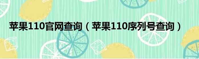 苹果110官网查询,苹果110序列号查询很多人还不知道,今天乐天来为大家解答以上问题,现在让我们一起来看看吧!