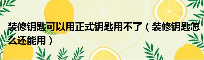 装修钥匙可以用正式钥匙用不了(装修钥匙怎么还能用)