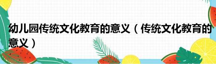 幼儿园传统文化教育的意义(传统文化教育的意义)