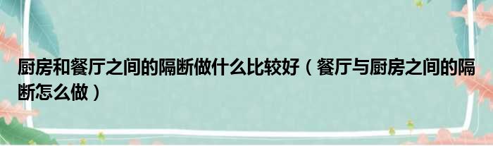 厨房和餐厅之间的隔断做什么比较好(餐厅与厨房之间的隔断怎么做)