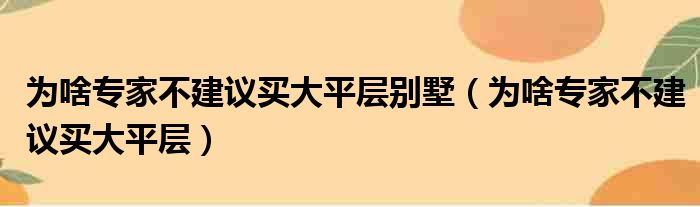 为啥专家不建议买大平层别墅(为啥专家不建议买大平层)