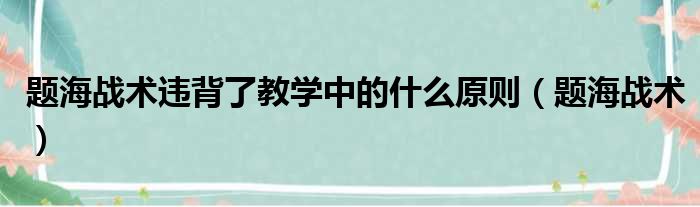 大家好,今天小六子来为大家解答以下的问题,关于题海战术违背了教学中的什么原则,题海战术这个很多人还不知道,现在让我们一起来看看吧!