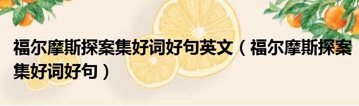 福尔摩斯探案集好词好句英文(福尔摩斯探案集好词好句)