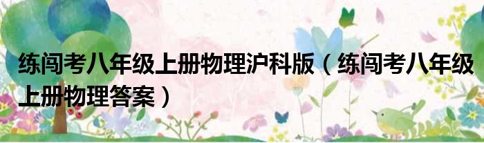 练闯考八年级上册物理沪科版(练闯考八年级上册物理答案)