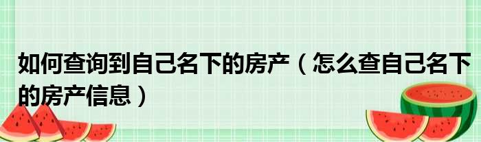 如何查询到自己名下的房产(怎么查自己名下的房产信息)
