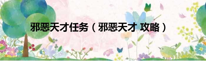 邪恶天才任务(邪恶天才 攻略)