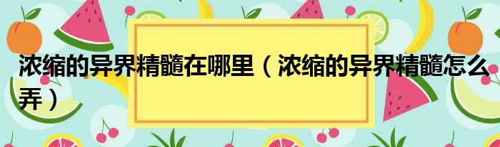 浓缩的异界精髓在哪里(浓缩的异界精髓怎么弄)