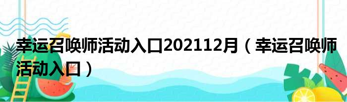 幸运召唤师活动入口202112月(幸运召唤师活动入口)