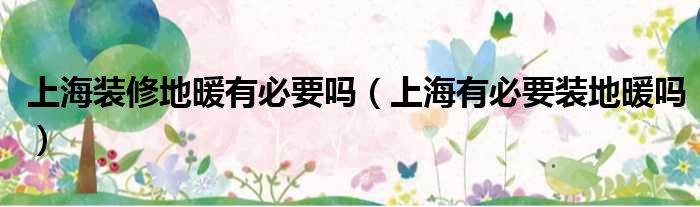 上海装修地暖有必要吗(上海有必要装地暖吗)