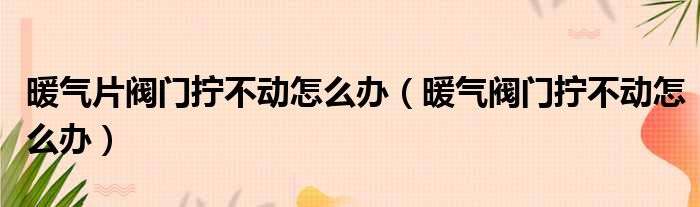 暖气片阀门拧不动怎么办(暖气阀门拧不动怎么办)