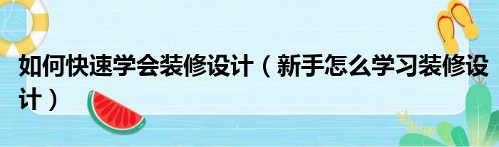如何快速学会装修设计(新手怎么学习装修设计)