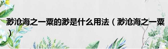 大家好,今天小六子来为大家解答以下的问题,关于渺沧海之一粟的渺是什么用法,渺沧海之一粟这个很多人还不知道,现在让我们一起来看看吧!